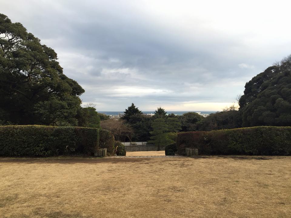鎌倉文学館から見る由比ガ浜の春霞の海