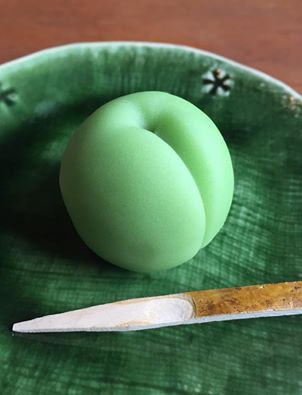 まるでその枝から摘んできたばかりのような 青い梅の実を象った和菓子に会いました。 北鎌倉「こまき」の「青梅」。 なめらかなこし餡を中に包んだ上生菓子です。 これ以上ないほどシンプルで美しい姿は、 瑞々しい青梅の実そのもの。 窓外のやわらかな風景を眺めながら 御抹茶と一緒に店内でいただくと 少しの間だけ時の流れを止められる気がします。