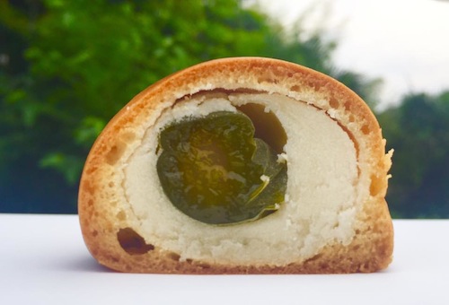 外見からは想像がつかないけれど、 青梅の甘露煮を、白餡が包んでいます。