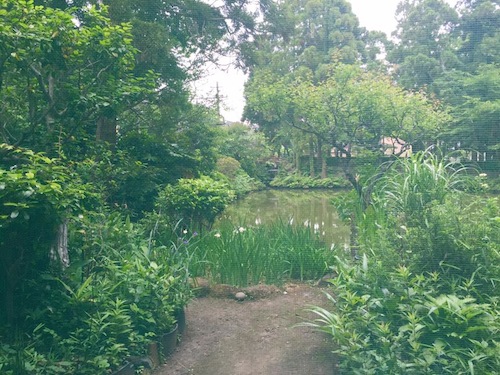 窓の外には円覚寺の白鷺池 菖蒲の花が咲いています。