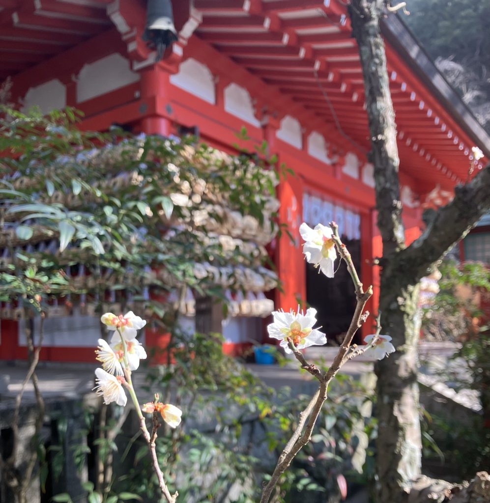 受験シーズンで,たくさん納められた絵馬も 梅の花が見守っていました。