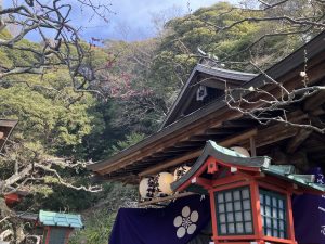 の歌で知られる菅原道真公をお祀りした荏柄天神社では,参道から境内のお庭まで