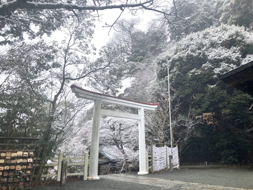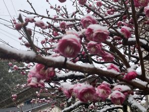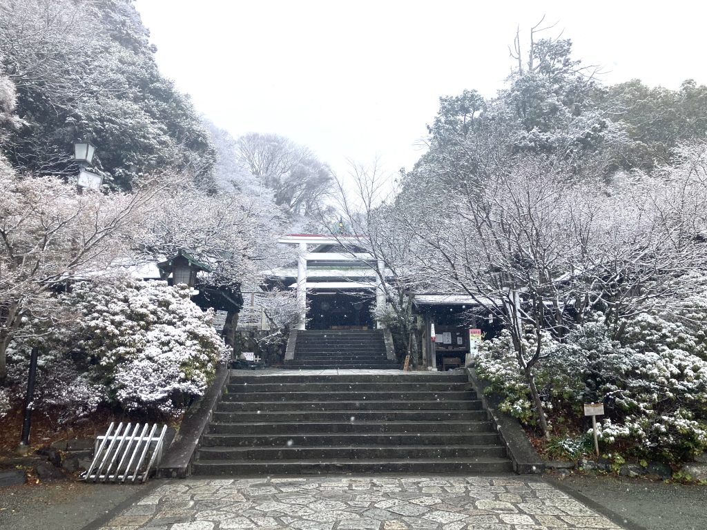 鎌倉宮へお参りに行くと、一夜のうちに枯れ木に白い花が咲いたよう…